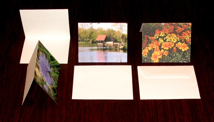 These photo note cards are made from a variety of stock and finishes and all feature high-quality photographs on the front and a blank interior for writing your message. They are printed on glossy and matte photo paper, heavy watercolor card stock, canvas-like card stock, and other interesting papers. I can print any picture for you onto note cards and a variety of those available can be seen here: Card Link Cards are packaged in clear poly card bags to protect them and each card includes an envelope.